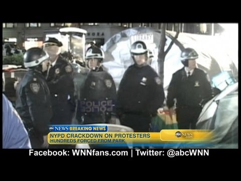 New York City Police on Tuesday arrested 70 people in an early morning eviction of the central rallying point in the Occupy Wall Street protest, according to reports. Hundreds of police in riot gear moved through Zuccotti Park on the corner of Broadway and Liberty Street in Manhattan, breaking up an encampment that sprang up on Sept. 17